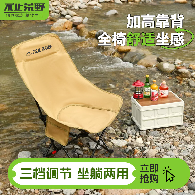 牧高笛高背月亮椅折叠椅户外露营钓鱼沙滩可调节加高靠背夹棉款