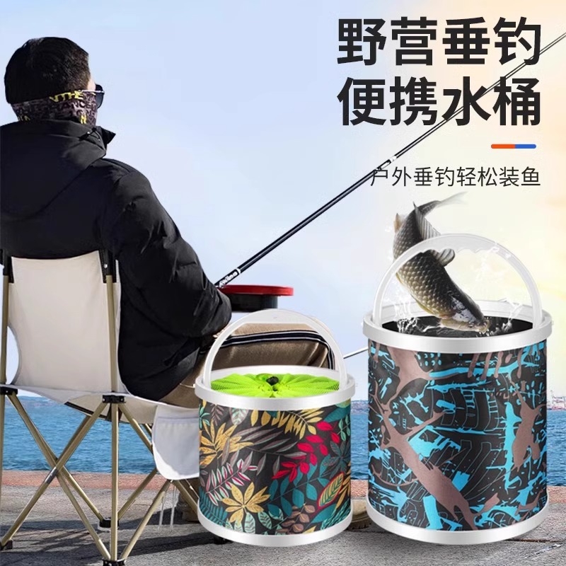 户外折叠打水桶钓鱼路亚野钓多功能手提装鱼桶鱼箱便携活鱼桶耐用