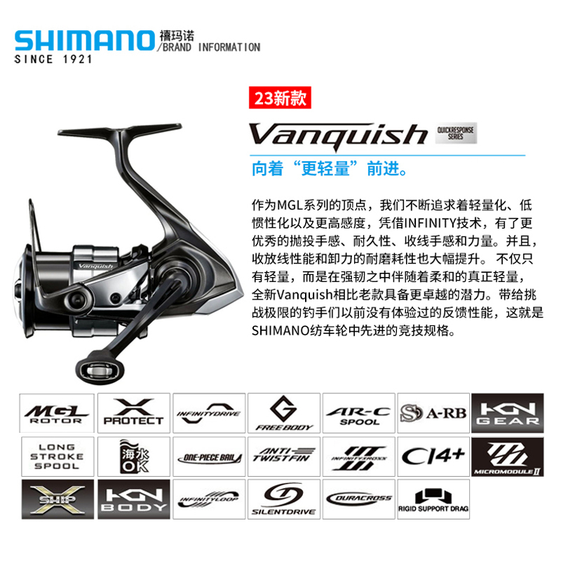 淘宝23款SHIMANO禧玛诺Vanquish万奎士纺车轮路亚轮轻量化鱼线轮渔轮
