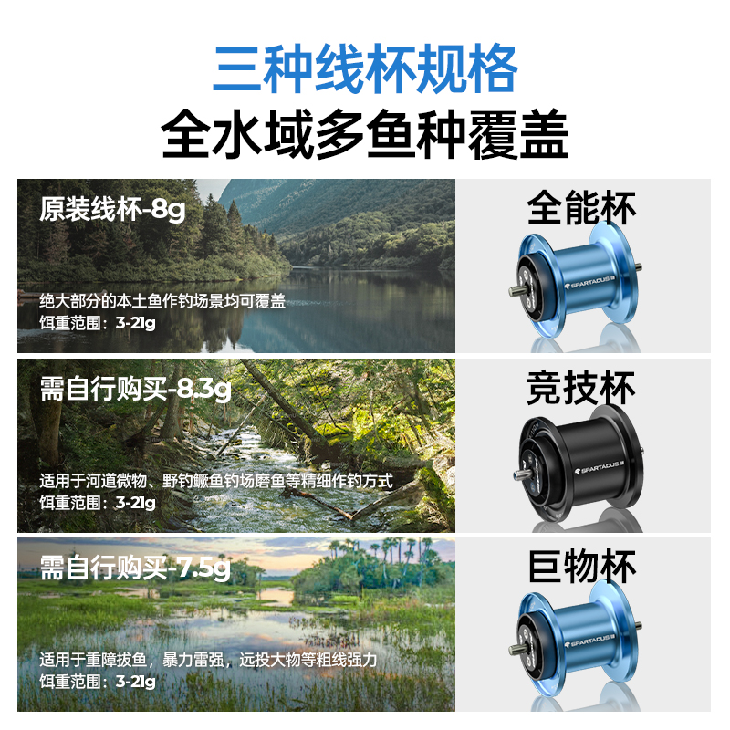 天猫卡斯丁斯巴达3水滴轮防炸线微物远投鱼线轮多线杯泛用打黑路亚轮