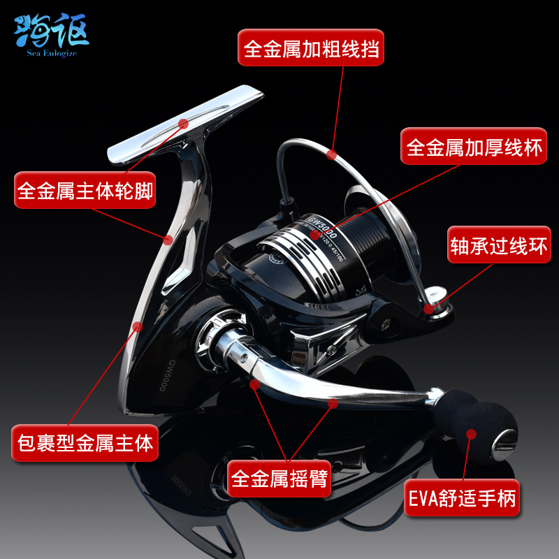 金属渔轮全金属头电镀头抛竿轮纺车轮海竿轮鱼线轮矶钓轮海钓轮