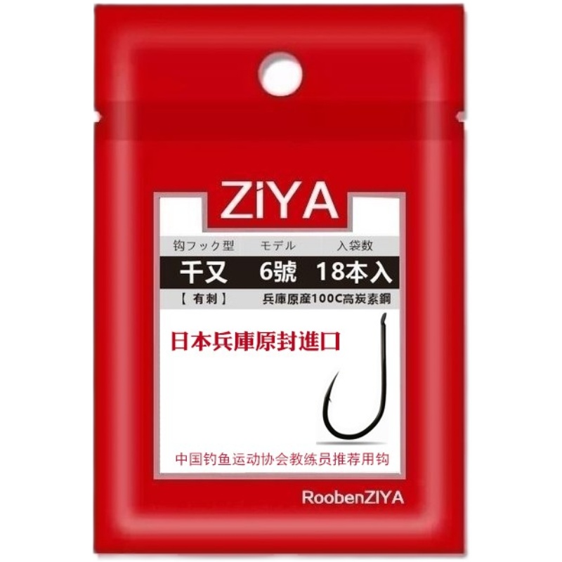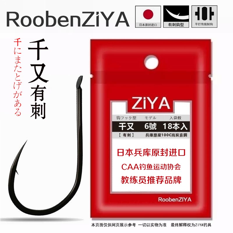 淘宝ZIYA原装正品千又鱼钩歪嘴细条淡水筏钓水库矶钓有倒刺高端钓鱼钩