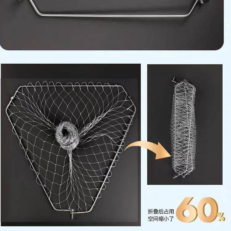 不锈钢抄网圈实心钢圈鱼捞大号加粗网框钢丝小眼三角折叠抄网头