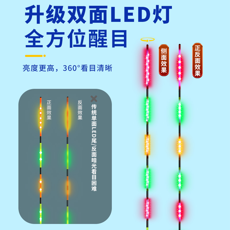 淘三老头高灵敏LED硬尾夜光漂316轻量日夜两用电子漂鲫鱼漂细尾浮漂