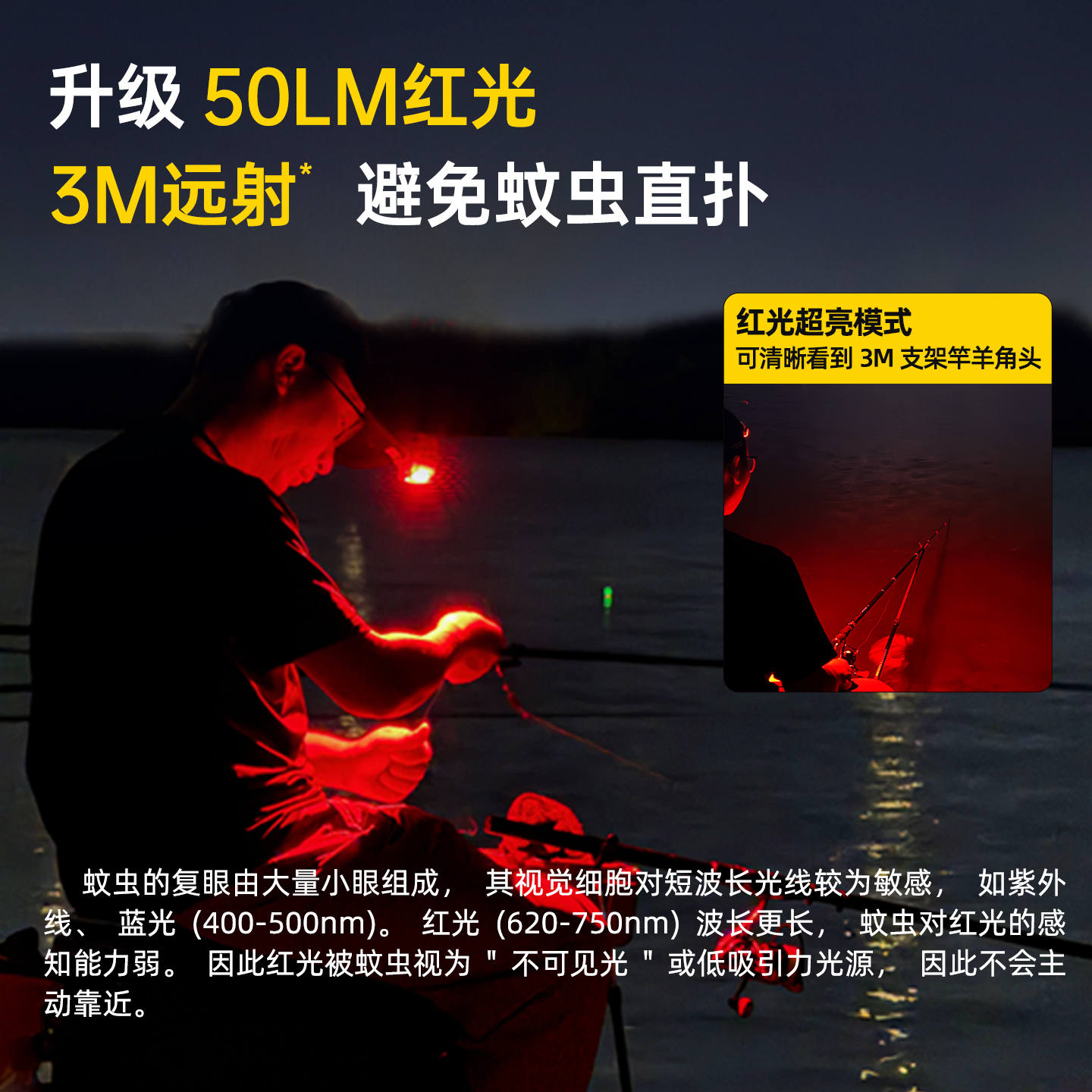 天猫六鱼夜钓头灯超轻超长续航钓鱼专用挥手感应红光驱蚊灯