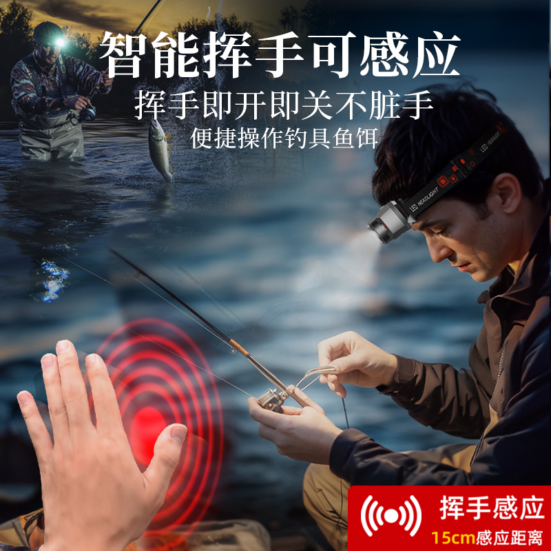 天猫头灯钓鱼专用2025新款强光超亮夜钓感应超长续航充电户外头戴式
