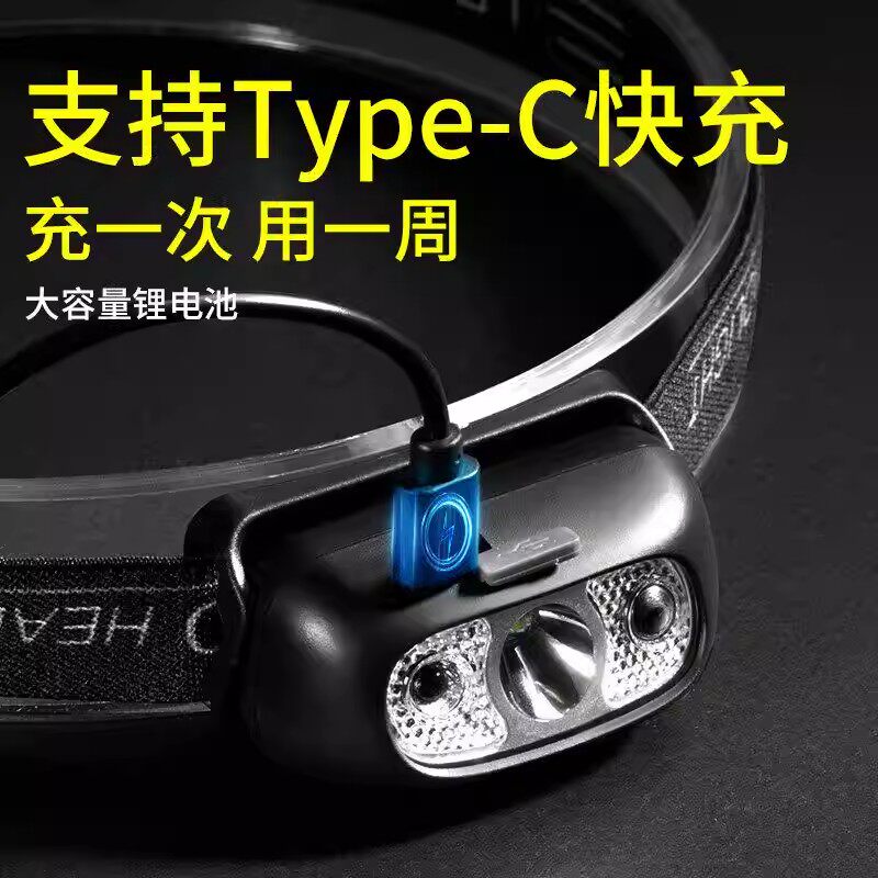 天强光头灯超亮充电头戴式夜钓鱼户外照明超长续航超轻感应小手电筒