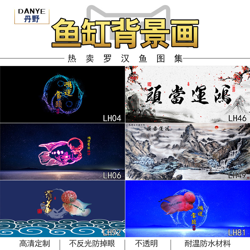 天猫鱼缸背景贴纸背景纸高清图3d壁纸水族贴纸罗汉观赏鱼金花红马壁画