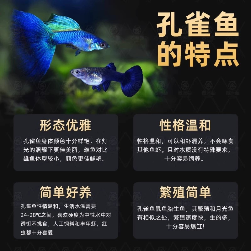 淘宝【纯种冰蓝孔雀鱼】淡水胎生鱼活体好养耐活冷水小型热带观赏鱼