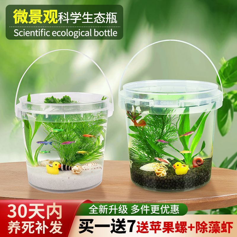 淘宝生态瓶微景观DIY小鱼手提塑料淡水冷水观赏鱼虾螺真水草活体学校