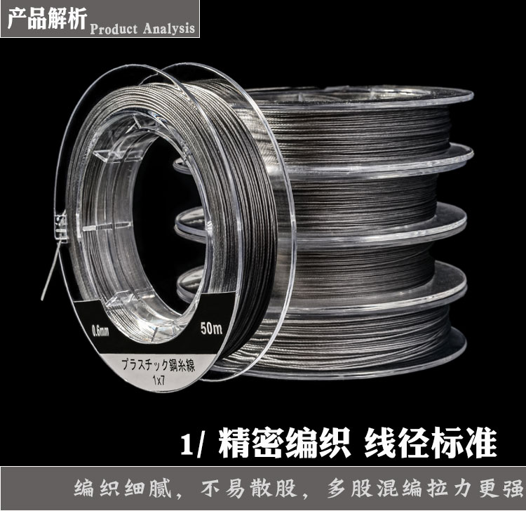 淘宝包塑海钓钢丝线钓鱼线防咬304不锈钢丝线超细柔软包胶穿珠首饰线