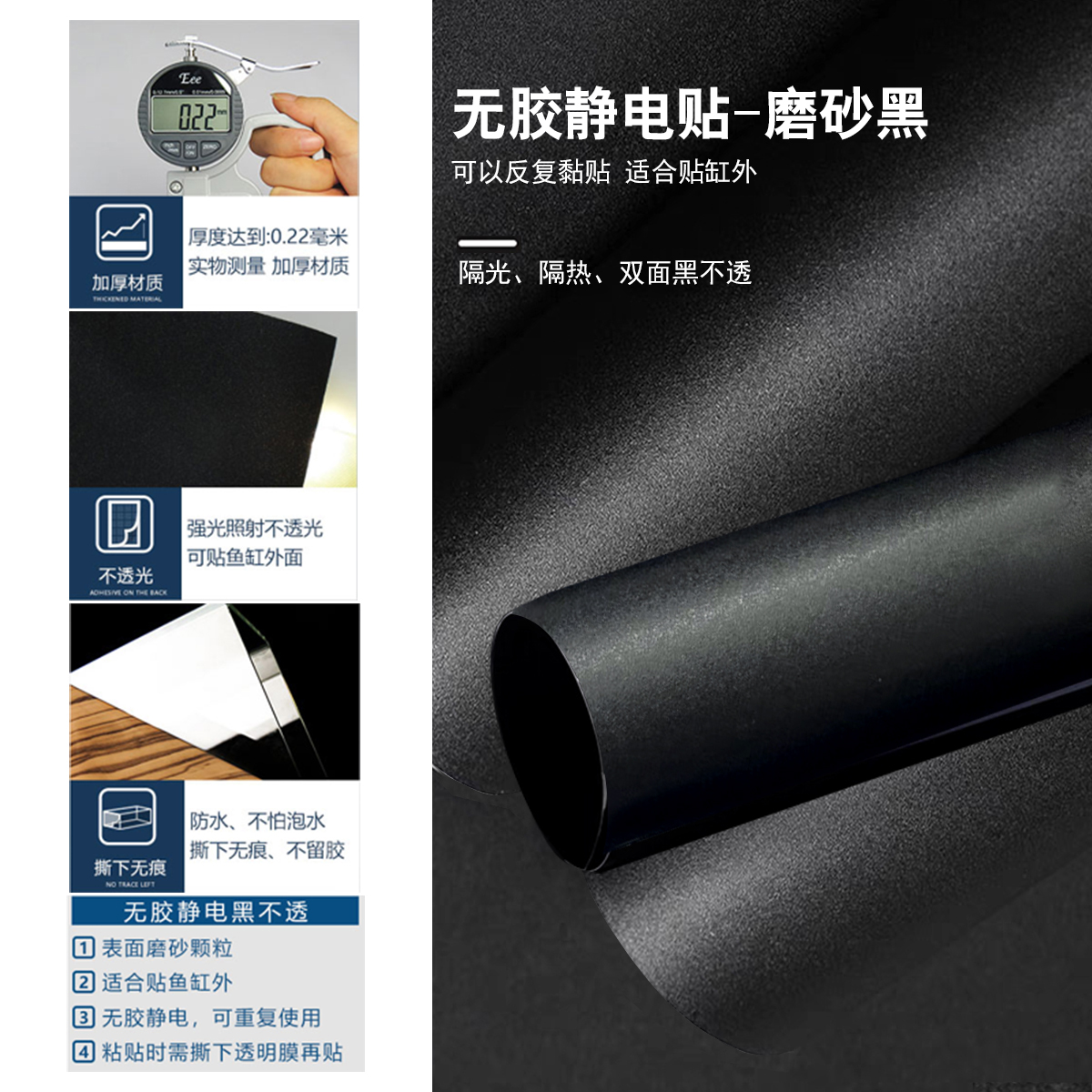 天猫背景鱼缸纯黑贴纸黑色静电贴自粘底部装饰免胶带胶正胶玻璃缸壁纸