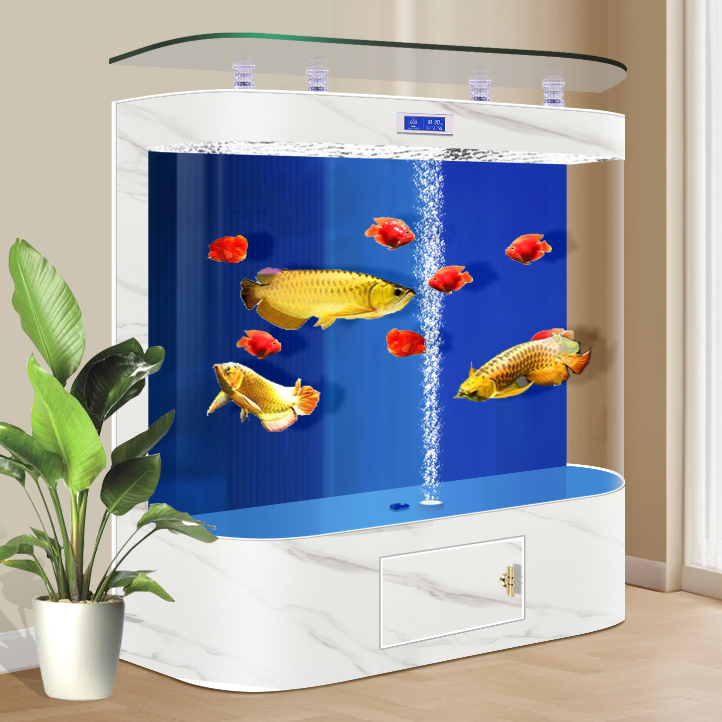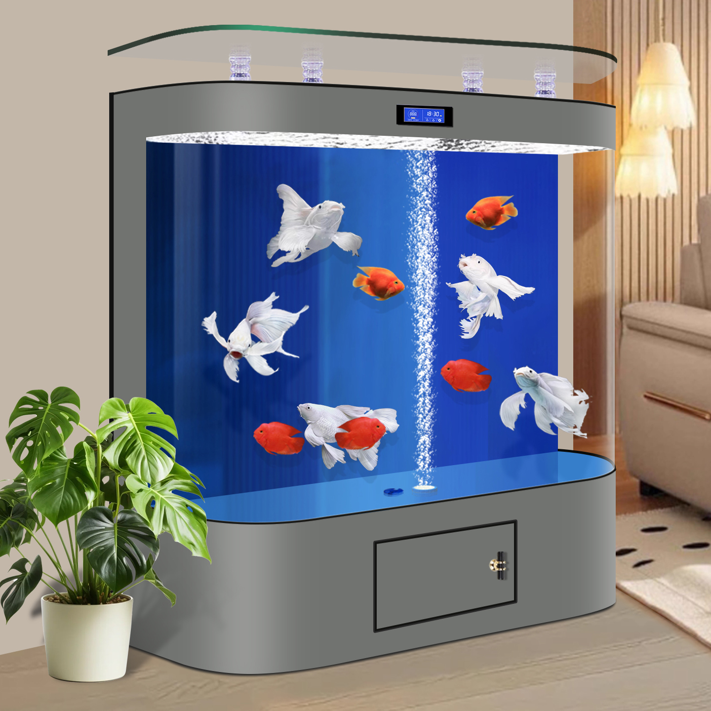 淘宝智能鱼缸2025新款过滤制氧一体机金鱼缸客厅家用超大型免换水族箱