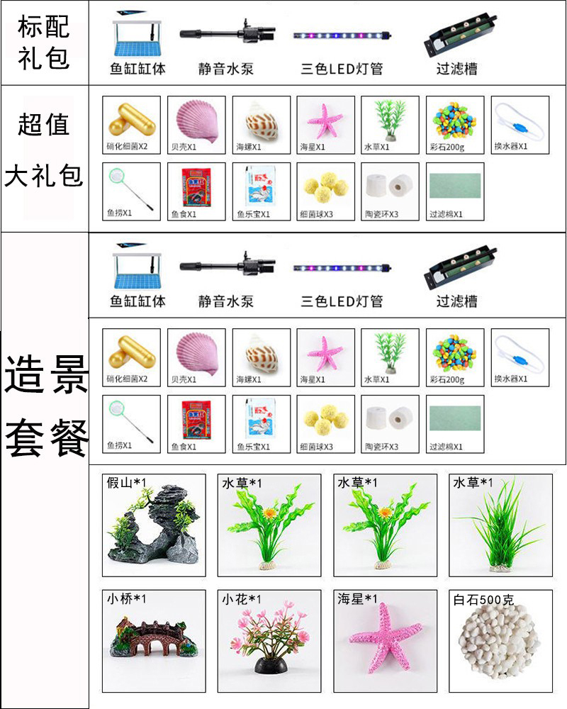 淘宝客厅小型玻璃金鱼缸家用免换水造景静音增氧桌面鱼缸办公室水族箱