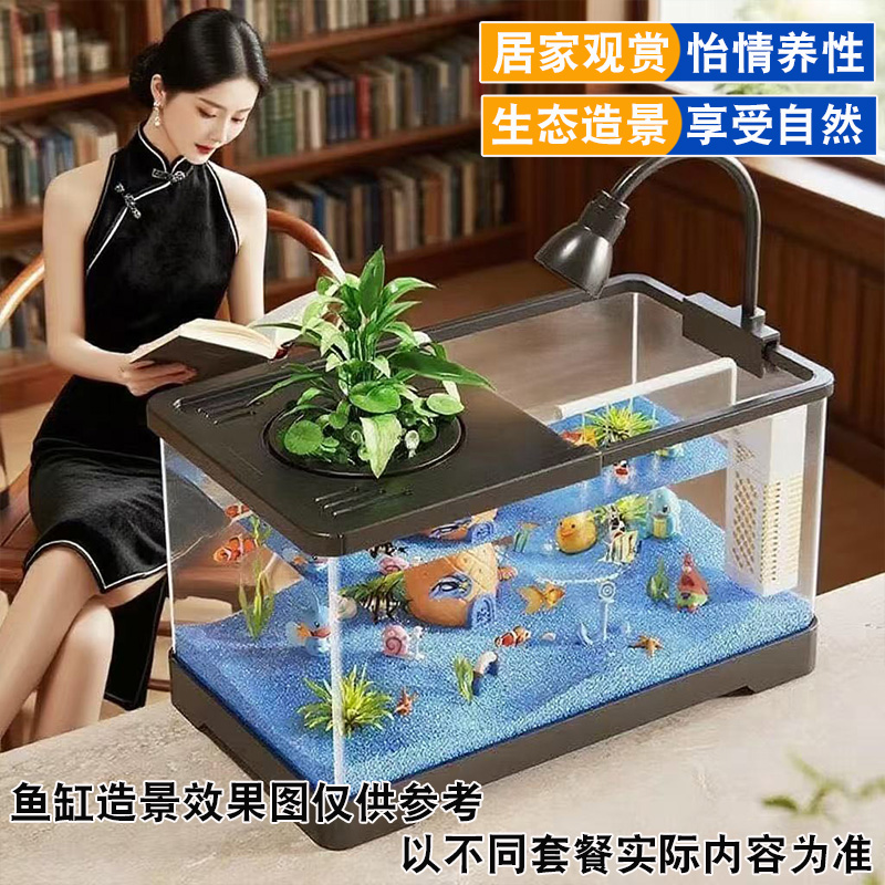 2025新款金鱼缸自循环过滤制氧三合一体桌面客厅小型家用生态玻璃