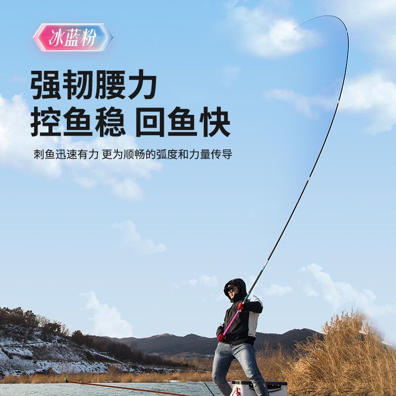 淘宝杰诺冰蓝粉鱼竿钓鱼竿手杆超轻超硬碳素综合竿鲫鲤鱼竿黑坑台钓竿