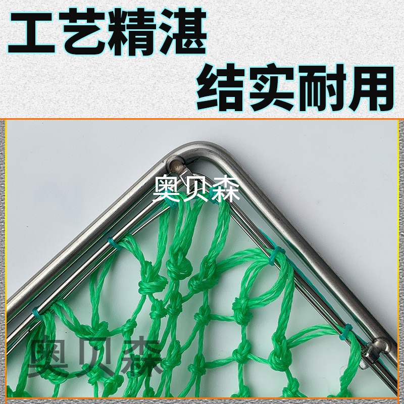 三角抄网头可折叠实心不锈钢抄网圈大力马抓鱼网兜大物抄鱼捞鱼网