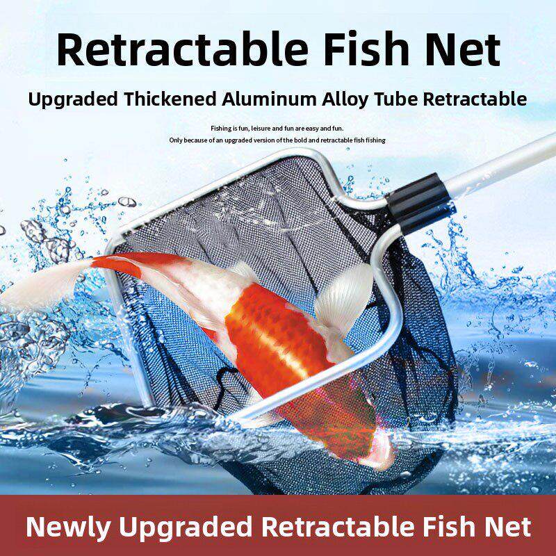 不锈钢可伸缩捞鱼网鱼抄3D虾捞鱼缸用抄网鱼捞隔离伸缩杆方形吸盘