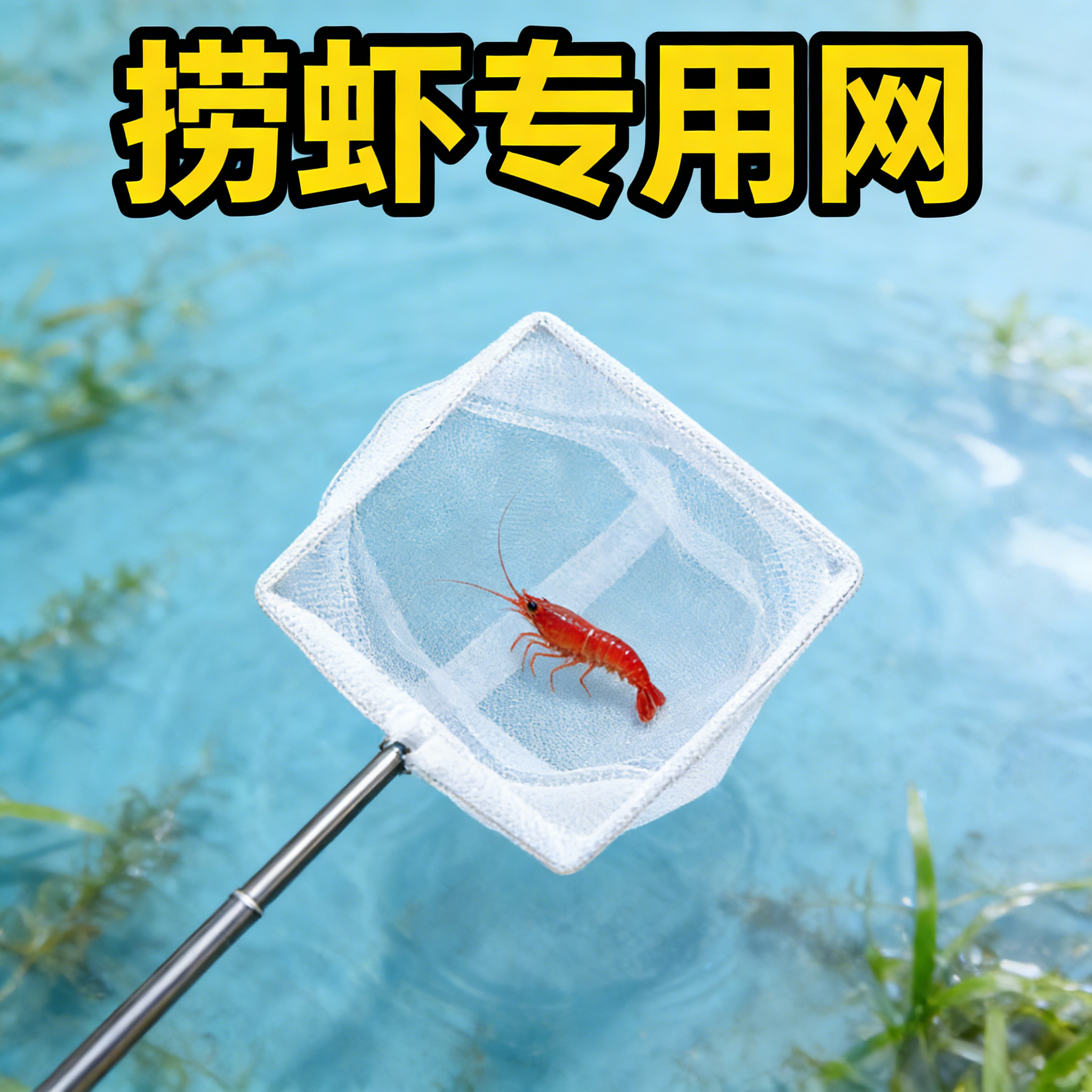 淘宝捞虾专用网小型观赏鱼孔雀鱼斗鱼缸3D不锈钢伸缩手抄鱼捞网兜渔捞