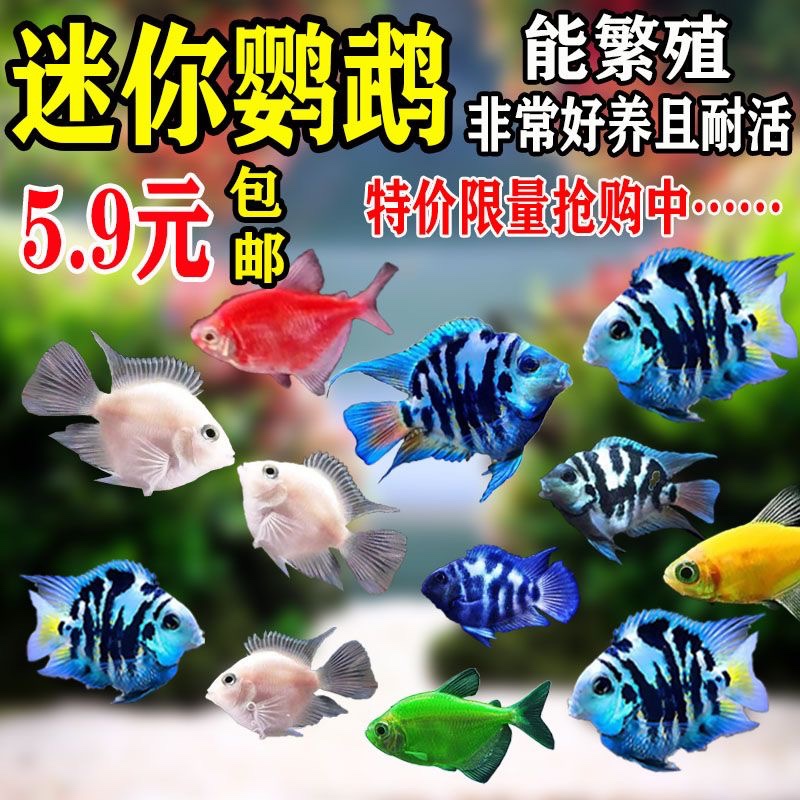 淘宝迷你鹦鹉鱼活体观赏鱼小型淡水热带鱼苗宝蓝白金一对可繁殖种鱼苗