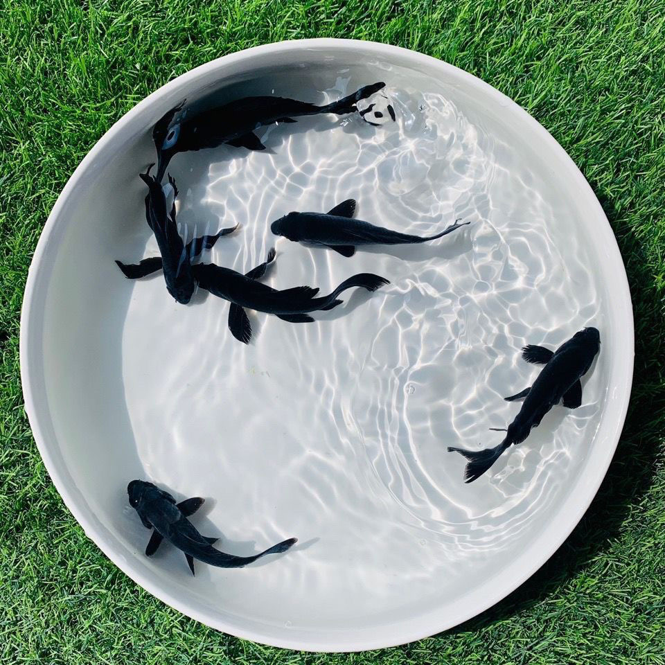 淘景德镇陶瓷鱼缸哑光黑色瓷盆大号乌龟缸观赏鱼缸桌面摆件手工花盆