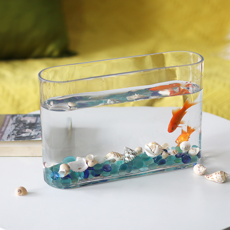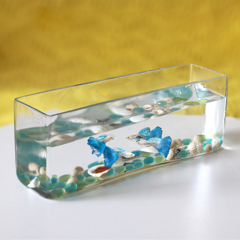 其采用的厚壁水晶玻璃材质,保证了鱼缸的坚固耐用,同时又让整体外观更加美观大方。透明的玻璃质地使得金鱼和小虾的每一个动作都能清晰呈现,让人感受到生机勃勃的自然之美。长方形的设计则提供了足够的观赏空间,让养鱼的爱好者能够尽情欣赏到鱼儿的游动和虾的活跃。