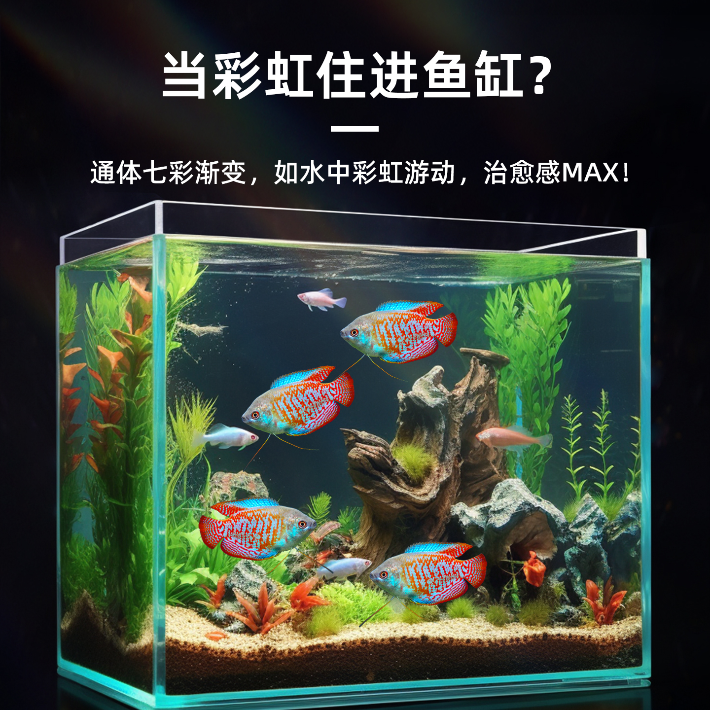 淘鱼缸斗鱼专用超白小型懒人玻璃缸客厅创意桌面摆件高级感观赏灯