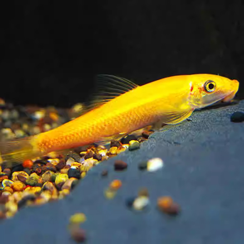 金苔鼠,又称清苔鼠或黄金红眼女王,是一种广受欢迎的热带观赏鱼,原产于东南亚淡水流域。其体色金黄,眼睛呈鲜艳红色,外形优雅,极具观赏价值。作为高效的“清道夫”,金苔鼠擅长啃食缸壁及装饰物上的藻类,有效控制水族箱中的绿藻、褐藻滋生,维护水质清洁。性情温和,适应力强,适合与多数小型热带鱼混养。适宜水温24–28℃,喜弱酸性至中性水质。因其出色的除藻能力和独特外观,成为草缸和生态水族箱的理想选择,深受水族爱好者喜爱。