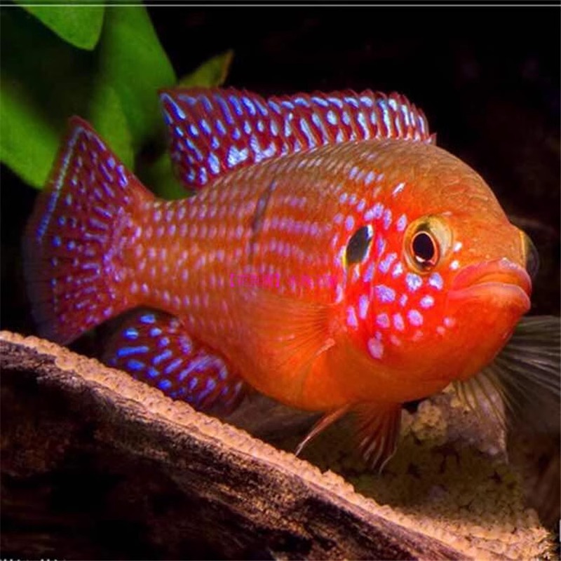 血钻红宝石热带鱼,一款令人惊艳的观赏鱼品种,属于三湖慈鲷钻石斑点系列。它们在淡水环境下展现出独特的魅力,成为众多鱼友喜爱的宠物鱼之一。