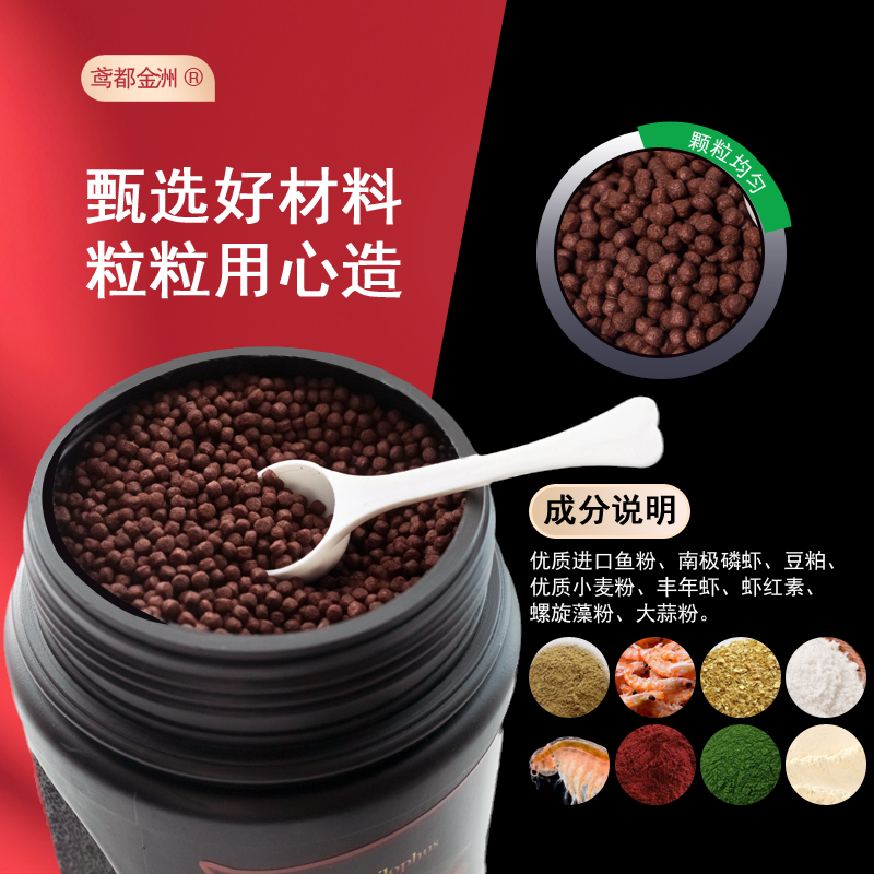【限时优惠】鸢都金洲店长鹦鹉鱼罗汉鱼财神鱼增红饲料,专为鹦鹉鱼、罗汉鱼、财神鱼等高价值观赏鱼设计。采用优质原料,富含营养丰富的蛋白质、维生素和矿物质,能有效促进鱼类增红增艳,提高观赏价值。同时,本产品易于消化吸收,促进鱼类健康成长。限时优惠期间购买,享受超值价格,是养鱼爱好者的首选饲料。