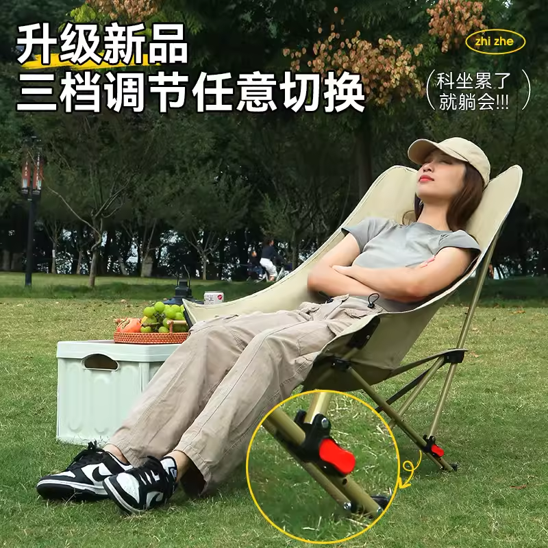 淘宝户外折叠椅便携式可调节躺椅坐躺两用加高月亮椅露营椅子钓鱼凳子