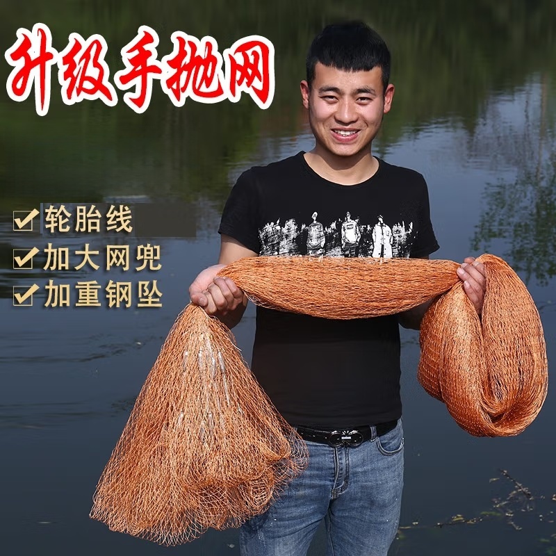 淘宝轮胎线传统手撒网手抛网老式撒网渔网捕鱼网防挂铅坠抛旋网抓鱼网