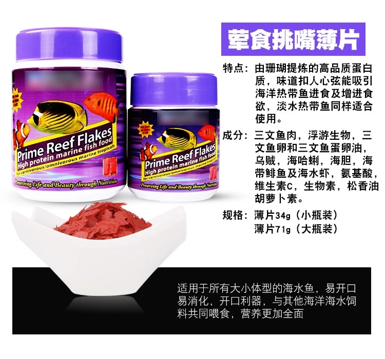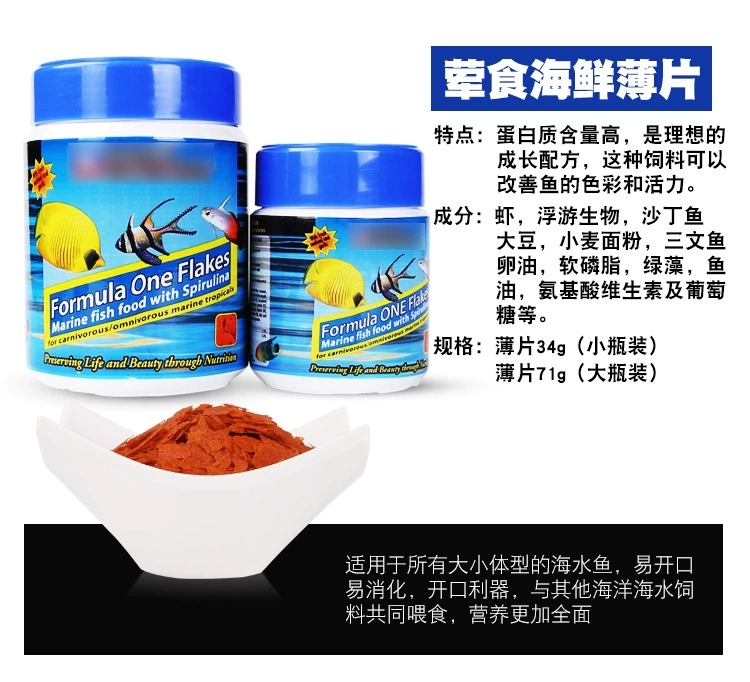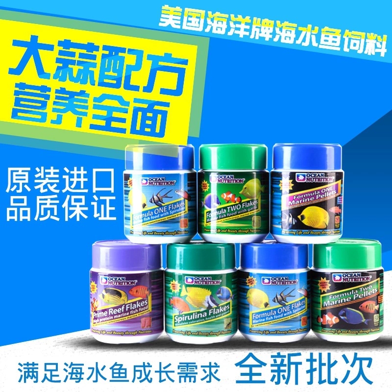 淘宝美国海洋牌鱼饲料大中小加蒜颗粒鱼食薄片荤食素食海水鱼开口鱼粮
