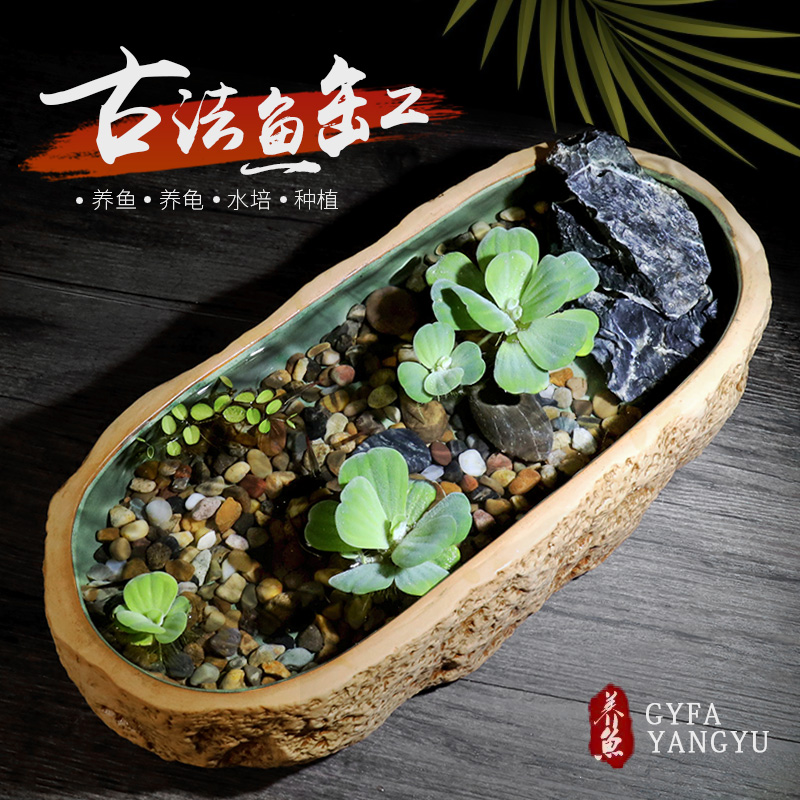 天猫古法养鱼缸生态缸造景碗莲浮萍陶瓷盆乌龟缸水培池小型装饰仿石头