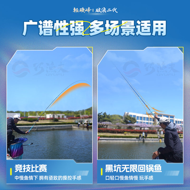 天猫巧渔夫新款破浪二代黑坑竞技专用回锅鱼竿手杆超轻超硬钓鱼竿渔具