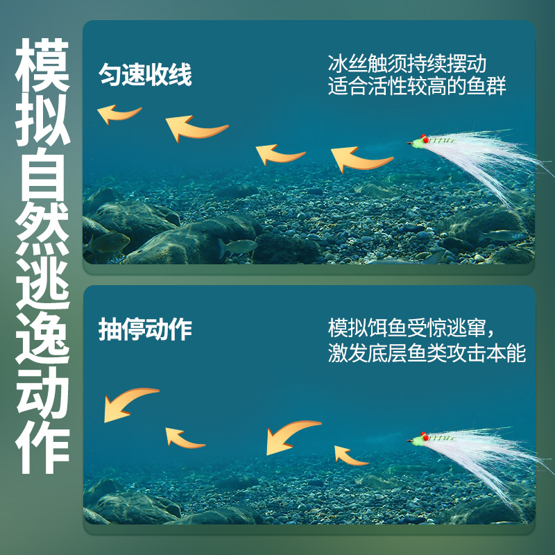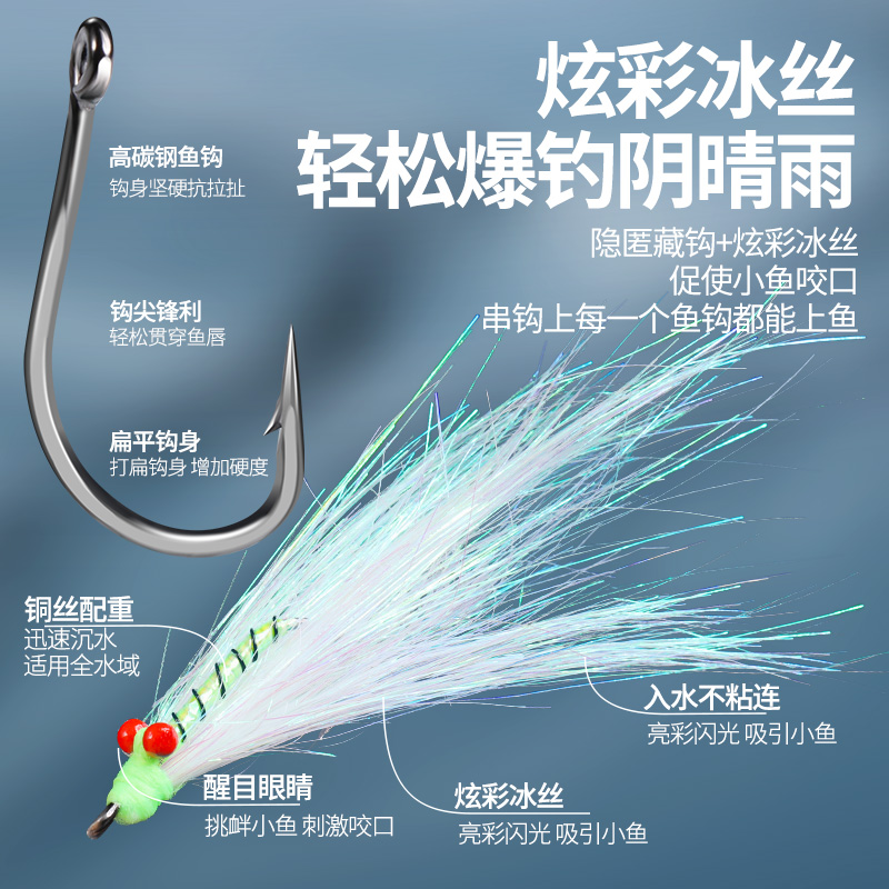 这是一款高效的垂钓装备——冰丝串钩飞蝇钩钓组。它采用优质冰丝材料制成,兼具耐用性和灵敏度。这款钓组适合路亚钓法,特别适合捕捉白条、马口、翘嘴等鱼类。其浮水特性使得鱼儿更容易发现和咬钩,提高钓鱼成功率。此外,这款钓鱼钩采用微物假饵设计,更贴近自然,诱鱼效果更佳。无论是专业人士还是钓鱼爱好者,这款钓组都是绝佳的选择,助您享受垂钓的乐趣。使用它,定能让您的钓鱼之旅更加顺利。