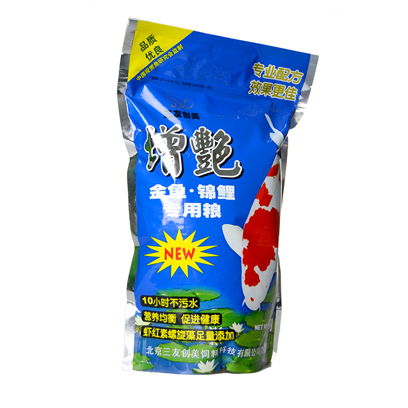 淘宝三友创美金鱼锦鲤专用鱼饲料观赏鱼粮螺旋藻增艳增体鱼食颗粒包邮