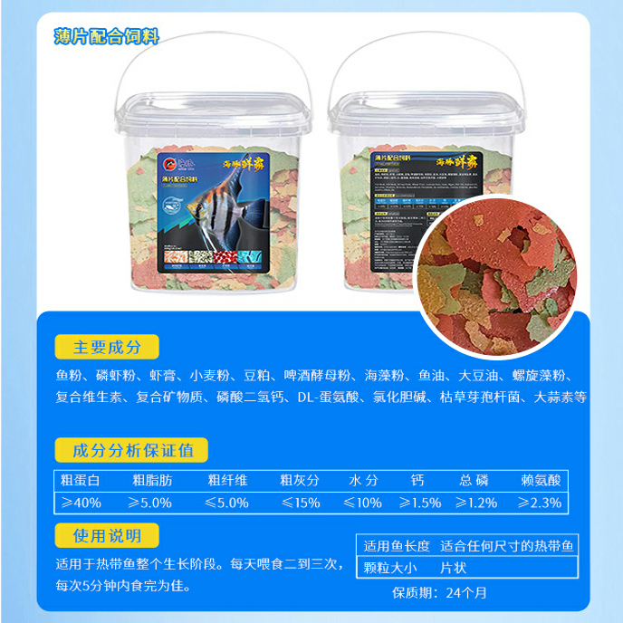 淘宝海豚鱼饲料薄片螺旋藻小型热带鱼孔雀鱼灯鱼热带鱼薄片配合鱼饲料