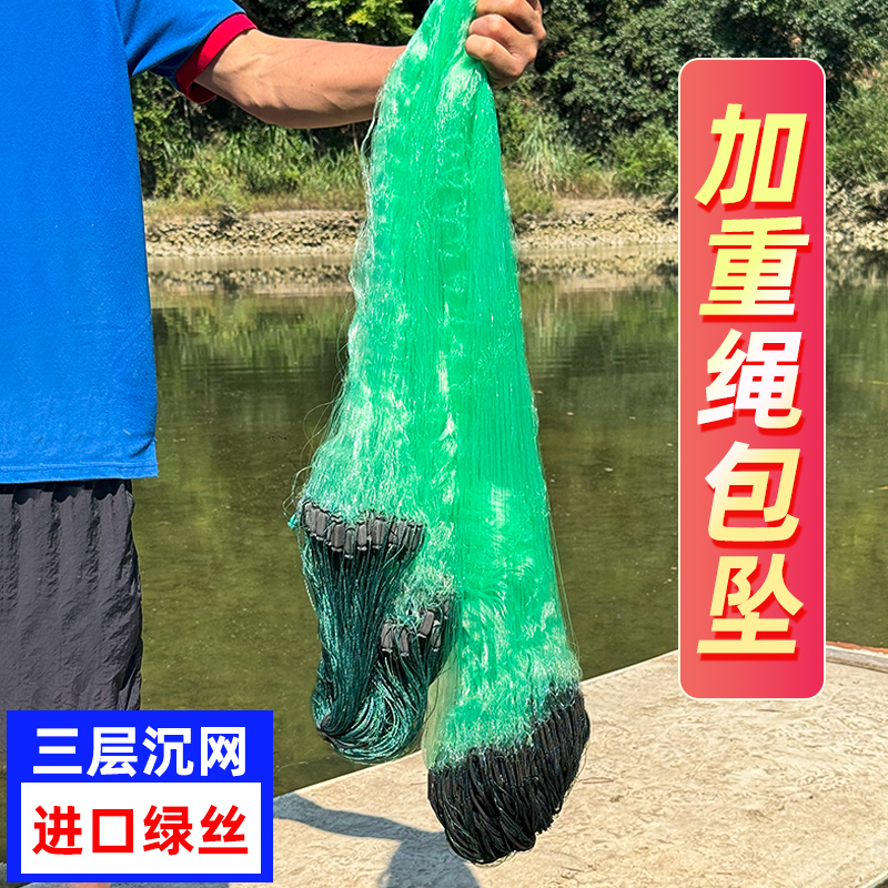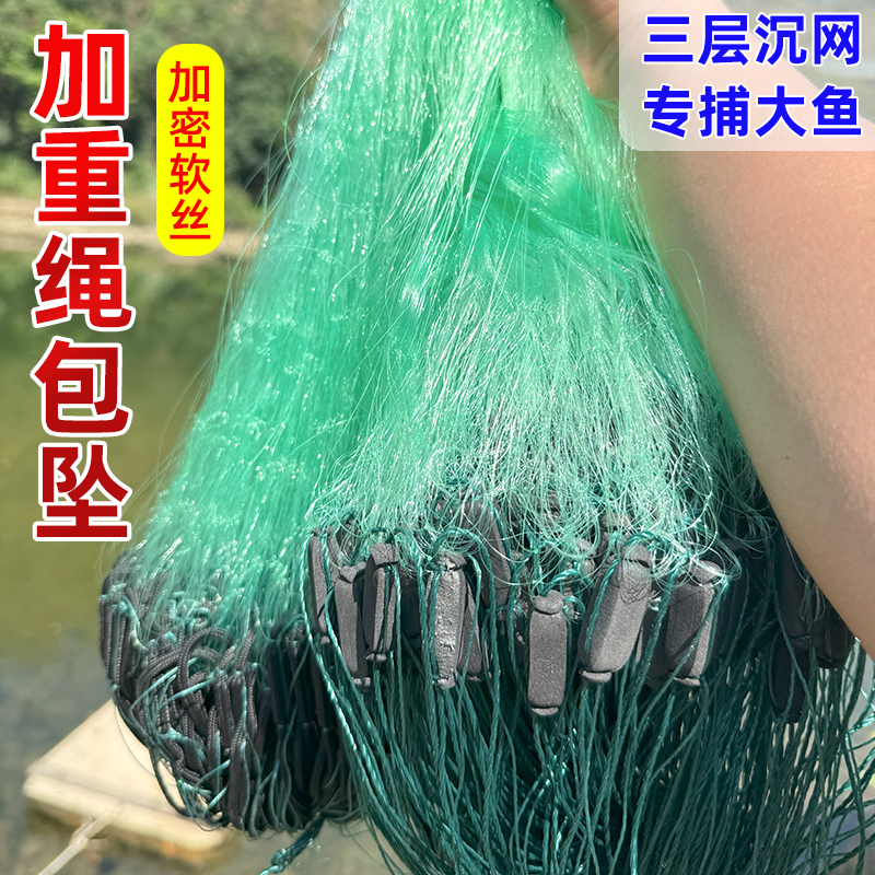 天渔网粘网三层沉网 鱼网加粗黄丝网捕鱼网扑鱼沾网挂网鲫鱼网丝网