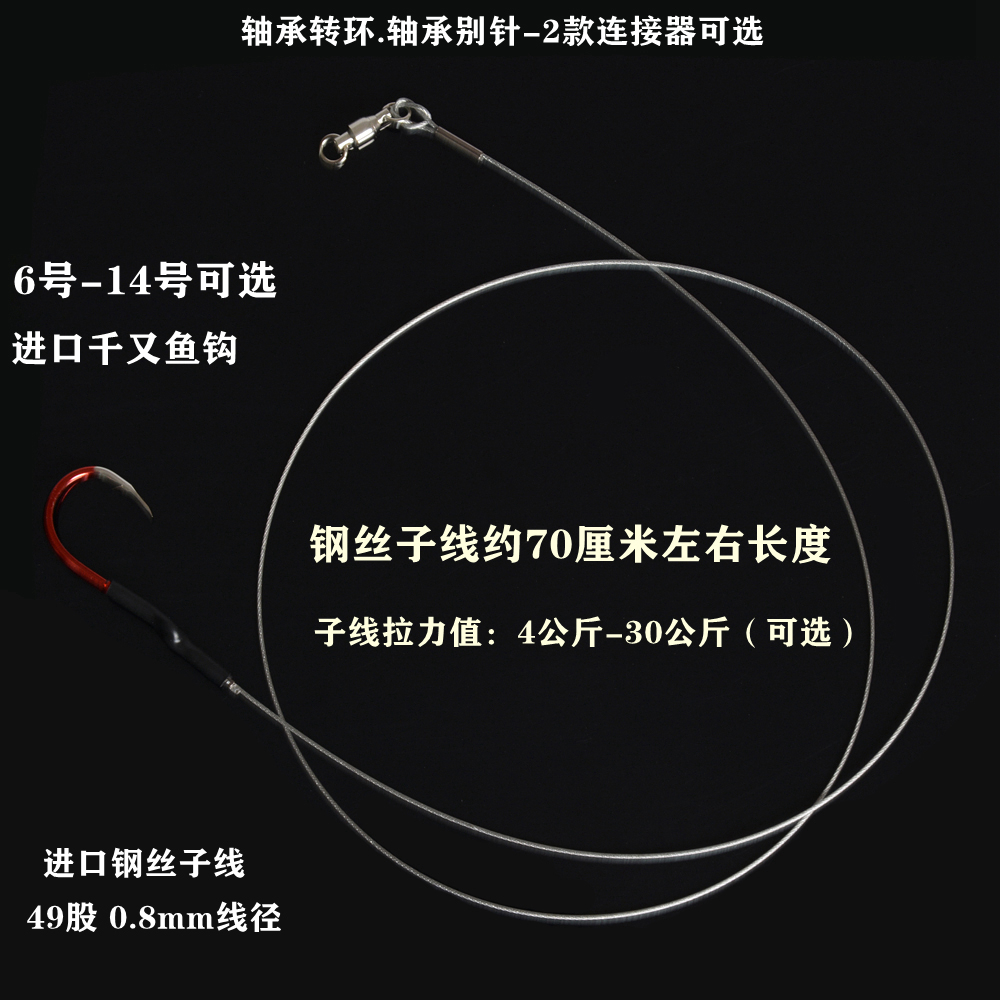 淘宝蓝瑟鸟进口千又钓鱼钢丝单钩子线防咬耐磨鱼线石斑鱼海狼海钓巨物