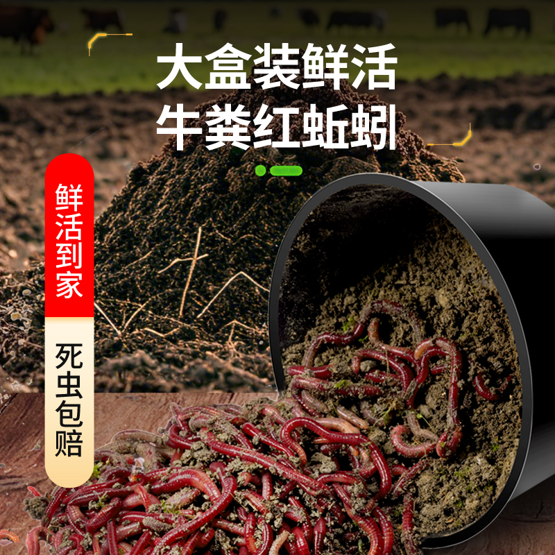 天钓鱼蚯蚓活饵大号红蚯蚓土1斤活体盒装红虫鱼饵垂钓活饵料散装