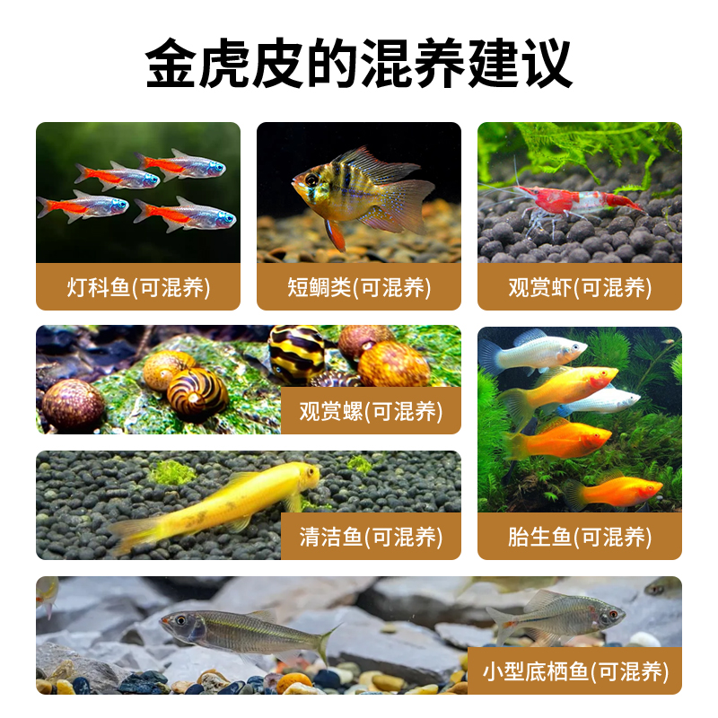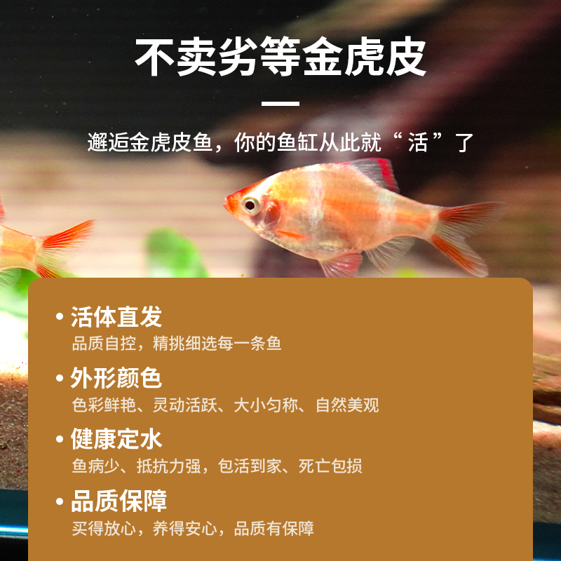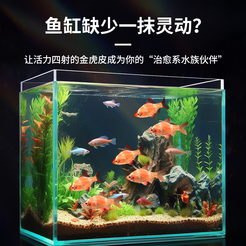 商品介绍:这款虎皮鱼四间鱼是热带观赏鱼的代表品种之一。其品种丰富多样,包括黄金虎皮、绿虎皮、蓝虎皮、翡翠虎皮等。这些鱼身体色彩鲜艳,具有独特的纹理和形态,非常引人注目。它们是鱼缸中的亮点,适合放在家中或办公室中作为观赏鱼。这些活体虎皮鱼健康活泼,容易饲养,需要适宜的水温和水质。购买这些活体观赏鱼,你可以为你的水生生态系统增添生机和色彩。