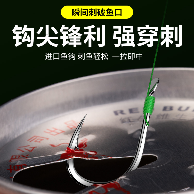 天竞技改良狼牙袖鱼钩黑坑鲫鱼鲤鱼手工定制绑好成品子线双钩钓鱼勾