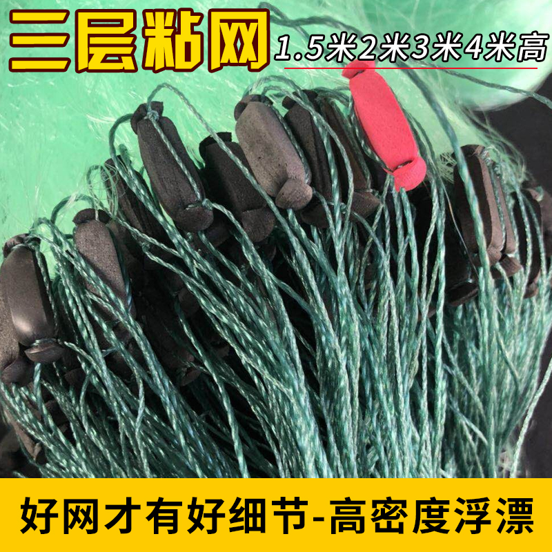 淘三层鱼网小套浮网沉网一指1.5指3m4米100米捕鱼网 粘网小白条渔网