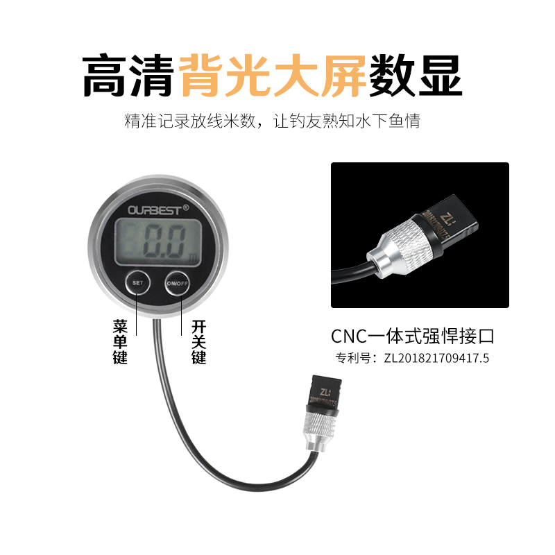 池刃电子鱼线计米器滚轮式水滴轮上线器路亚纺车轮绕线长度计数器