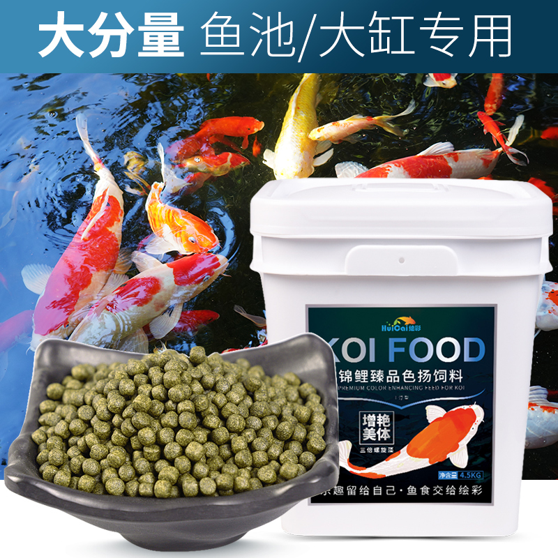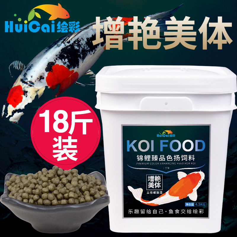 天猫绘彩锦鲤饲料鱼食18斤不浑水螺旋藻增色扬增体 蝴蝶鲤专用粮4.5KG