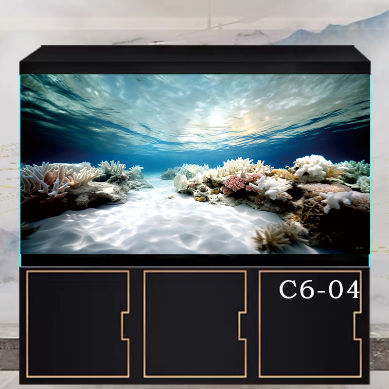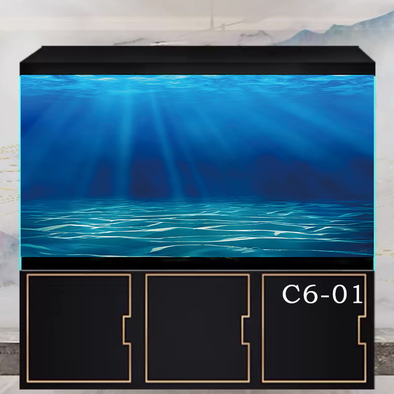 淘宝新款鱼缸背景画壁纸高清3D立体缸外正面胶尺寸定制鱼缸贴纸