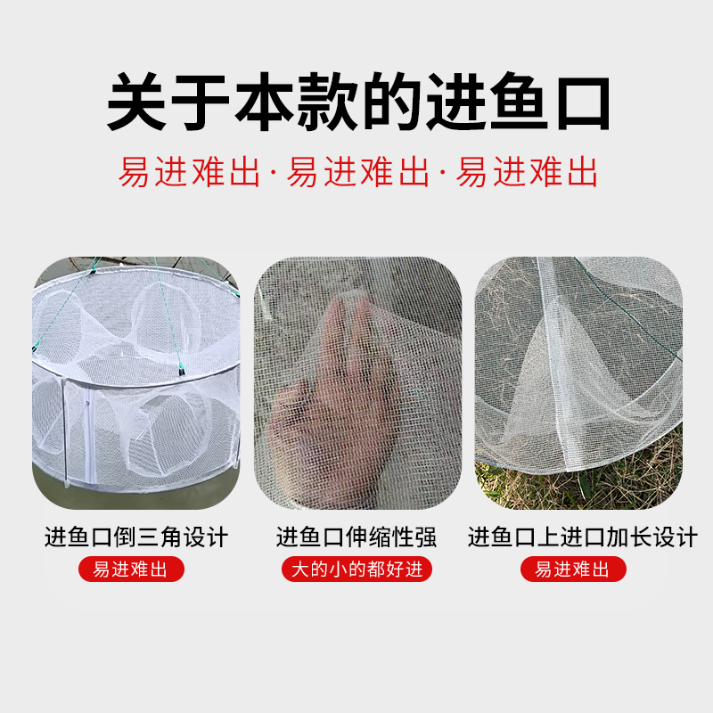 淘宝白色圆形折叠虾笼网鱼笼龙虾网螃蟹笼渔网鱼网抓定鱼神器只进不出