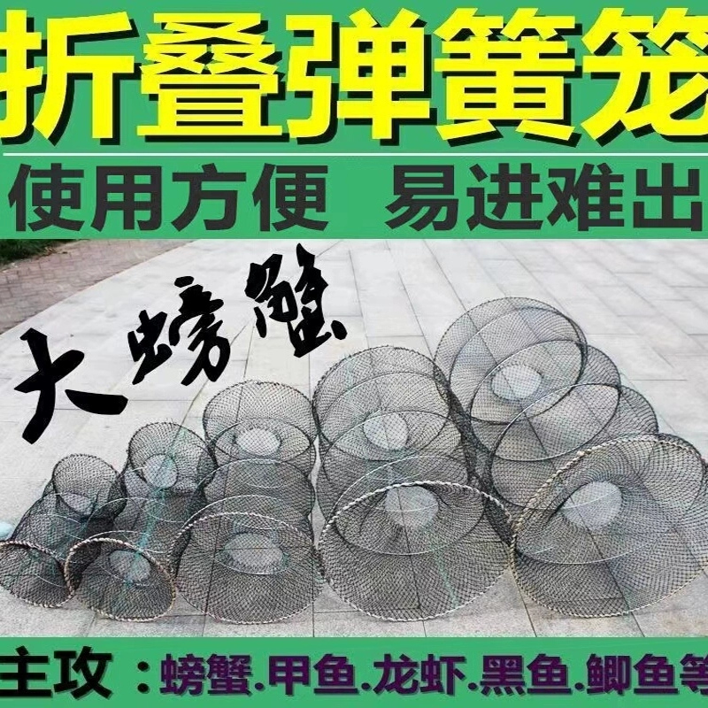 淘宝甲鱼笼黑鱼笼螃蟹抓鱼虾地网笼折叠捕鱼花篮鱼笼只进不出捕鱼神器