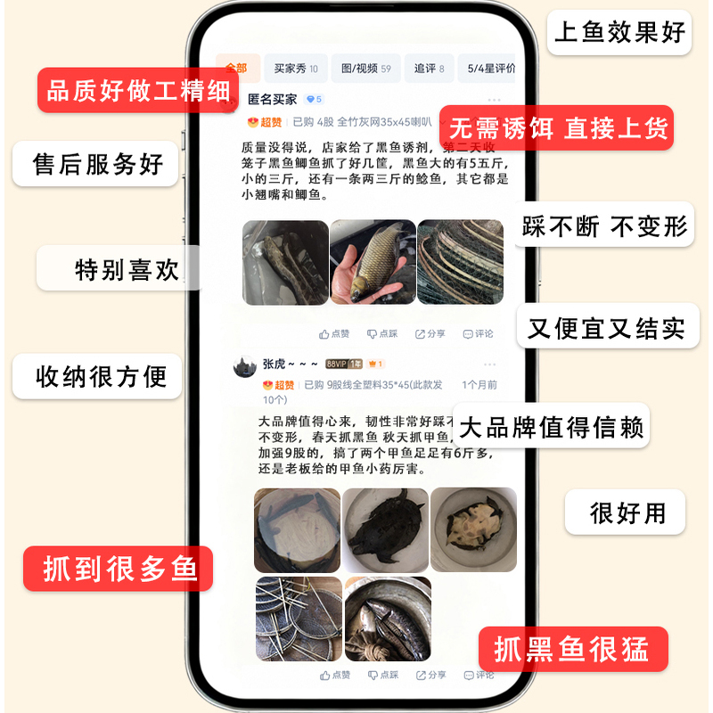 天猫鱼网捕捉鱼神器捕鱼花篮鱼笼新型户外黑鱼抓鱼鲫鱼笼只进不出折叠